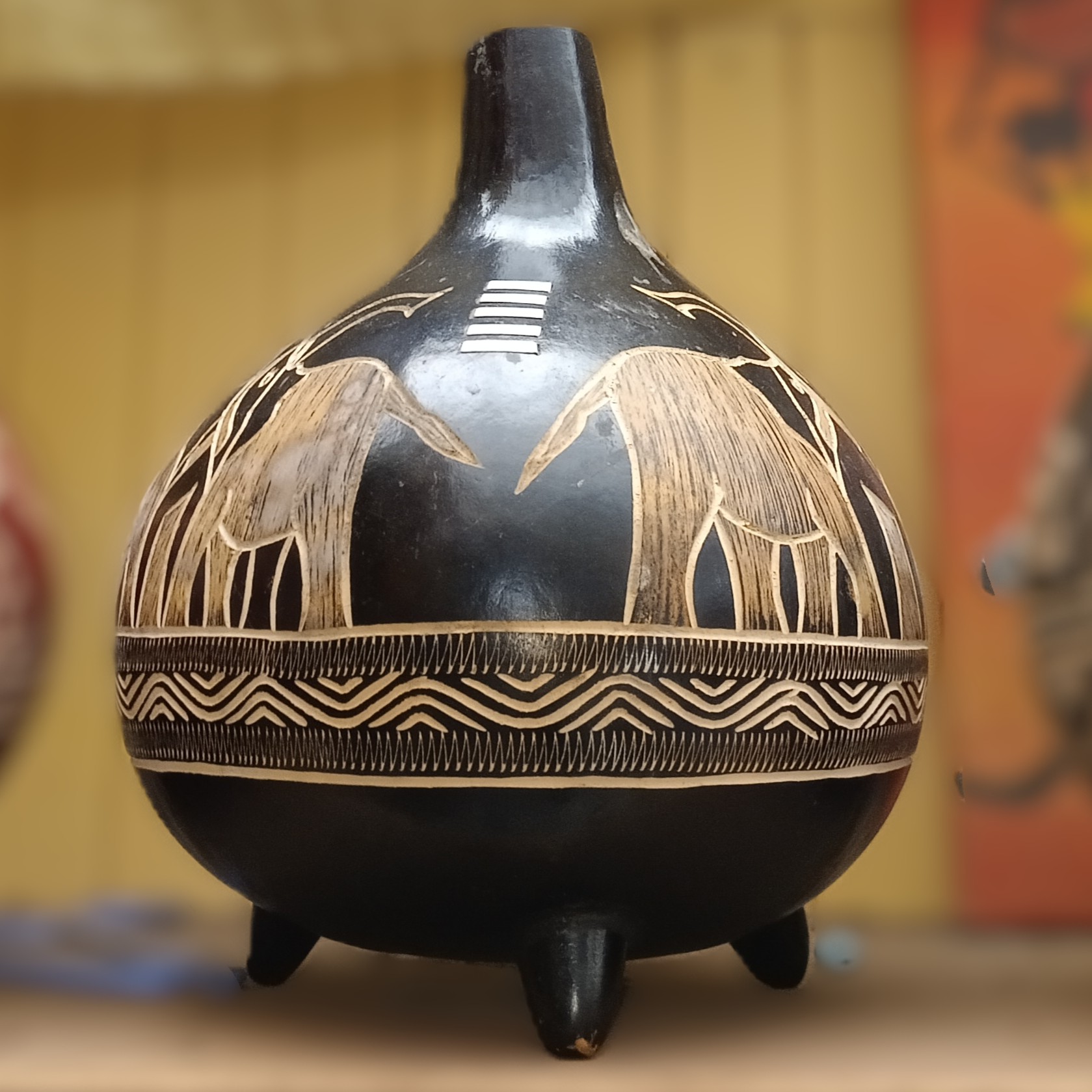 An authentic African water vessel carved.